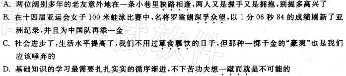解析 A项“狭路相逢”多用来指仇人相见,彼此都不肯轻易放过。不可用于老友相见。B项“深半众望”指在群众中享有威望,令人信服。C项“箪食瓢饮”形容简朴的生活。D项“一蹴而就”比喻事情轻而易举,一下子就成功了。