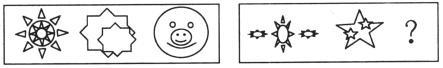 解析 第一套图形由内外两个图形组成,且两个图形形状相似,第二套图形每一个都由相同的三个图形组成,且有两个图形对称。