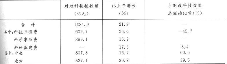 根据下面的统计表回答问题从题中数据可以推断(  )。A.科技三项费是中央财政科技拨款的一部分B.中央拨款是总的财政科技拨款的一部分...