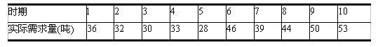 企业某种商品的前l0期实际需求量如下表所示。使用移动平均数法预测第11期的需求量是()吨(移动区间设定为3)。 A.37.9 B.43.5 ...