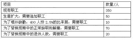 解析 需要招聘新职工的数量=年底保有职工-现有员工+所需员工=400-350+50+10+70+20=200(人)。