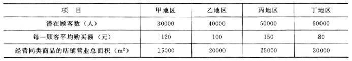 共用题干 某零售商计划从四个备选地区中选择一个合适的地区开设一家零售商店,每个地区购买某类商品的潜在顾客数(C),每一顾客平均购买额(RE)、经营同类商...