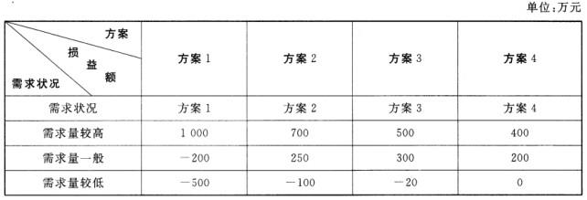 某企业为扩大生产,提出了四种方案,对未来市场需求大致估计为需求量较高、需求量一般和需求量较低三种情况,并估算出四种方案未来几年在三种需求状态下的损益额,如...