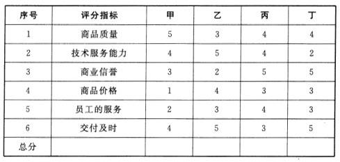 共用题干 某商品流通企业想和供应商建立一种长期合作的关系,该企业有甲、乙、丙、丁四家供应商,现该企业决定首先对这四个供应商的供货情况进行评审。根据四个供...