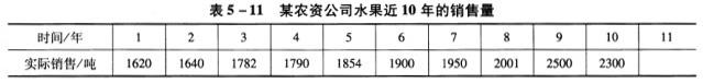 问题 共用题干 某农资公司经销一种水果,近10年的销售量如表5-11所示,由业务员进行预测。