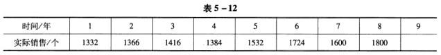 问题 共用题干天宇机电设备公司经销一种阀门,近8年的销售量如表5-12所示。该种阀门的价格为36元/个,单位商品变动成本为30元/个,计划期固定成本分摊额为1万元。公司的某业务员对第九年的销售量做预测。