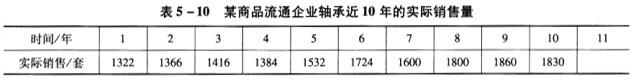 问题 共用题干某商品流通企业经销一种轴承,近10年的实际销售量如表5-10所示。