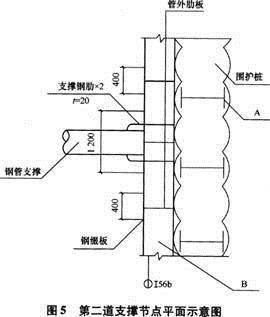问题 某施工单位中标承建过街地下通道工程,周边地下管线较复杂,设计采用明挖顺作法施工,通道基坑总长80m,宽12m,开挖深度10m;基坑围护结构采用SMW工法桩、基坑的深度方向设有2道支撑,其中第一道支撑为钢筋混凝土支撑,第二道支撑为Φ609×16mm钢管支撑(见图5)。基坑场地地层自上而下依次为:2.0m厚素填土、6m厚黏质粉土、10m厚砂质粉土,地下水位埋深约1.5m。在基坑内布置了5口管井降水。 项目部选用坑内小挖机与坑外长臂挖机相结合的土方开挖方案。在挖土过程中发现围护结构有两处出现渗漏现象,渗漏水为清水,项目部立即采取堵漏措施予以处理,堵漏处理造成直接经济损失20万元,工期拖延10天,项目部为此向业主提出索赔。 <1> 、给出图5中A、B构(部)件的名称,并分别简述其功用。 <2> 、根据两类支撑的特点分析围护结构设置不同类型支撑的理由。 <3> 、给出项目部堵漏措施的具体步骤。 <4> 、项目部提出的索赔是否成立?说明理由。 <5> 、列出基坑围护结构施工的大型机械设备。