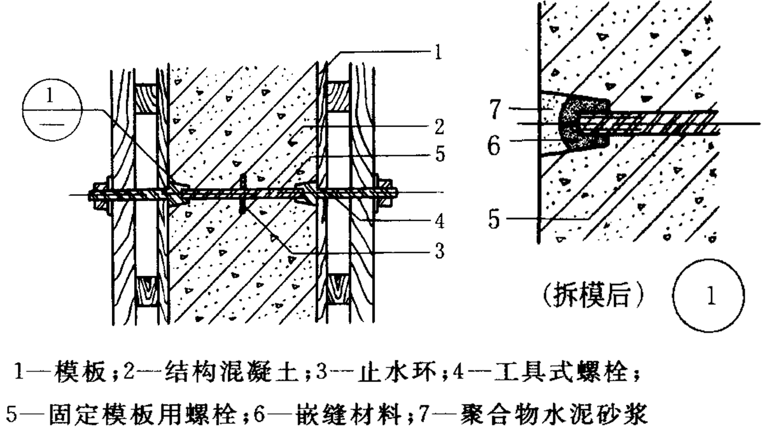 解析 1.钢板桩支撑、SMW桩、地下连续墙。降低至基坑底部0.5m以下才能满足基坑开挖和水池施工要求。 2.A土方开挖及地基处理,B-防水层施工,C—池壁及柱浇筑,D—满水试验 解析:主要考查有围护结构基坑工程施工和整体式现浇钢筋混凝土池体结构施工流程 测量定位→土方开挖及地基处理→垫层施工→防水层施工→底板浇筑→池壁及柱浇筑→顶板浇筑→功能性试验。 3. (1)支护结构施工与基坑开挖期间,支护结构达到设计强度要求前,严禁在设计预计的滑裂面范围内堆载;临时土石方的堆放应进行包括自身稳定性、邻近建筑物地基和基坑稳定性验算。 ( 2 )支撑结构上不应堆放材料和运行施工机械,当需要利用支撑结构兼做施工平台或找桥时,应进行专门设计。 ( 3 )材料堆放、挖土顺序、挖土方法等应减少对周边环境、支护结构、工程桩等的不利影响。 (4 )基坑开挖的土方不应在邻近建筑及基坑周边影响范围内堆放,并应及时外运。 ( 5 )基坑周边必须进行有效防护,并设置明显的警示标志;基坑周边要设置堆放物料的限重牌,严禁堆放大量的物料。 ( 6) 建筑基坑周围6m 以内不得堆放阻碍排水的物品或垃圾,保持排水畅通。 (7)开挖料运至指定地点堆放。 4.在池壁形成的螺栓锥形槽,应采用无收缩、易密实、具有足够强度、与池壁混凝土颜色一致或接近的材料封堵,封堵完毕的穿墙螺栓孔不得有收缩裂缝和湿渍现象。 5. 1)基坑四周设防汛墙,防止外来水进入基坑;建立防汛组织,强化防汛工作; 2)构筑物下及基坑内四周埋设排水盲管(盲沟)和抽水设备,一旦发生基坑内积水随即排除; 3)备有应急供电和排水设施并保证其可靠性。 4)当构筑物的自重小于其承受的浮力时,会导致构筑物浮起;应考虑因地制宜措施:引入地下水和地表水等外来水进入构筑物,使构筑物内、外无水位差,以减小其浮力,使构筑物结构免于破坏。