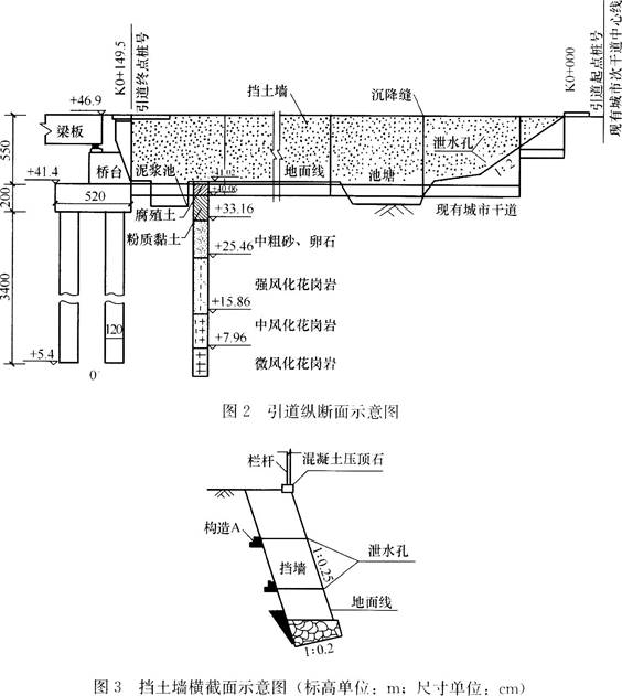 某公司承建的市政桥梁工程中。桥梁引道与现有城市次干道呈T形平面交叉。次干道边坡坡率1:2,采用植草防护;引道位于种植滩地。线位上现存池塘一处(长15m、宽...