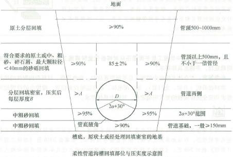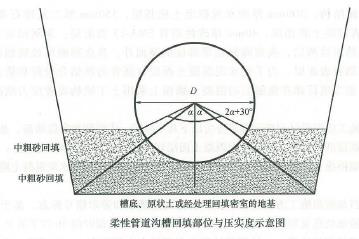 解析 1. 招标人存在的问题:①“投标单位需在近三年内取得过鲁班奖”不对,因为发包人不能以不合理的条件限制潜在的投标人;②“发包人在规定的时间内向A公司书面答疑”不对, 对于任何投标人的质疑,发包人都应同时向全体投标人统一进行答疑。 2. 还应包括项目名称、项目特征、计量单位。 3. 本工程制订的焊接工艺参数还应包括坡口形式、焊接材料、预热温度、层间温度、焊接速度等内容。 4. 管道两侧应回填的材料是:中、粗砂、碎石屑, 最大粒径小于40mm 的砂砾或符合要求的原土;A 是95%,B是100~200mm。 5. 在槽断面图中,管道中心至沟槽底边端点的连线与管道中心垂线夹角,这个夹角为α,如图所示