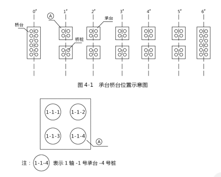 某公司项目部施工的桥梁基础工程,灌注桩混凝土强度为 C25 直径 1200mm,桩长 18m承台、桥台的位置如图所示 4-1 所示,承台的桩位编号如图 4...