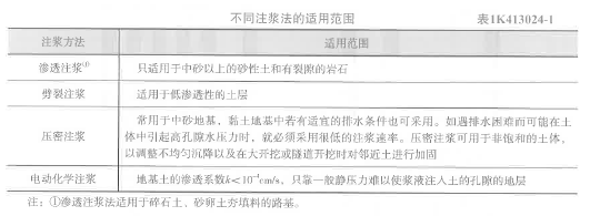 解析 教材P136 不同注浆法的适用范围表1K413024-1,压密注浆:常用于中砂地基,黏土地基中若有适宜的排水条件也可采用。如遇排水困难而可能在土体中引起高孔隙水压力时,就必须采用很低的注浆速率。压密注浆可用于非饱和的土体,以调整不均匀沉降以及在大开挖或隧道开挖时对邻近土进行加固。