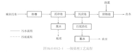 解析 教材P186 (2)二级处理以氧化沟为例,其工艺流程如图1K414012-2所示,主要去除污水中呈胶体和溶解状态的有机污染物质。通常采用的方法是微生物处理法,具体方式有活性污泥法和生物膜法。经过二级处理后,B0D5去除率可达90%以上,二沉池出水能达标排放。