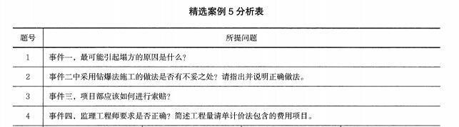 问题 1.背景:某公司承建城市地铁工程标段,包含一段双线区间和一个车站,区间隧道及风道出入口采用暗挖法施工,车站的主体结构采用明开法施工。区间隧道上方为现况道路,路宽22.5m,道路沿线的地下埋设有雨水污水、天然气、电信、供热等管线,还有一座公共厕所。隧道埋深15m 左右,并穿越长度100m 左右的中风化石灰岩。岩层以上分别为黏土2m,砂卵石5~7m,粉细砂2m,粉质黏土3m,回填土2~2.5m。施工日志显示如下事件:事件一、设计文件提供的资料表明:隧道与地下管线的垂直净距都在3.5m 以上;经过分析,项目部认为地下管线对暗挖隧道施工的影响不大。但在挖到地面的公共厕所位置时隧道发生塌方。事件二、隧道遇有中风化石灰岩时,项目部决定采用钻爆法施工,施工前编制了专项方案,并请当地的爆破专家审定,获准后即组织实施。事件三、由于车站基坑内的一条给水干线和供热管线迁移滞后,车站开挖推迟两个月。事件四、隧道实际长度比清单长度少1.5m,监理工程师要求项目部扣除1.5m 的长度。 2.问题及解答:见精选案例5 分析表中内容: