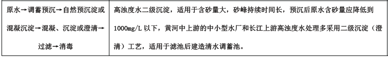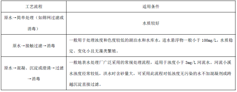 解析 常用水处理工艺流程及适用条件见下表