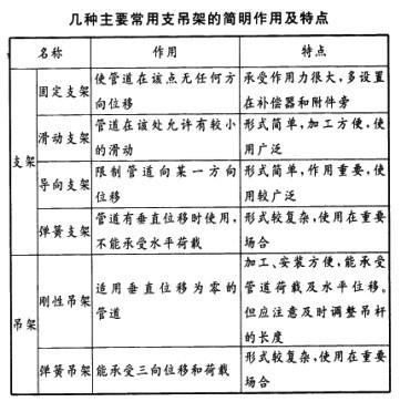解析 城镇热力管网几种主要支吊架的作用及特点见下表。