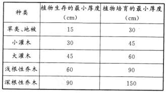 解析 植物生长所必需的最低限度土层厚度见下表。(注:本题知识点在第四版新教材中已删除)