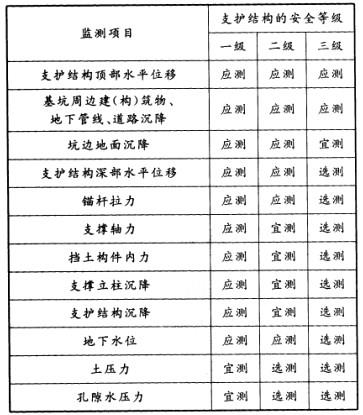 本案例第4问主要针对本案例考查基坑监测项目。根据《建筑基坑支护技术规程》(JGJ120-2012),基坑工程监测项目可按下表选择。