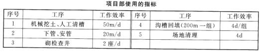 项目部承建的雨水管道工程管线总长为1000m,采用直径为600mm混凝土管,柔性接口,每50m设检查井一座。管底位于距地表下4m,无地下水,采用挖掘机开槽施工。项目部根据建设单位对工期的要求编制了施工进度计划。编制计划时,项目部使用的指标见下表。