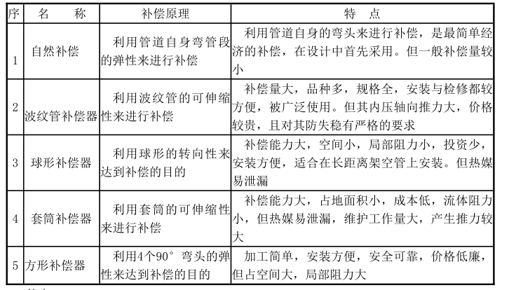 解析 供热管网中常用补偿形式简明示表 表 2K315023-2