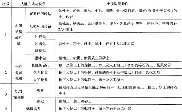 解析 }钻孔灌注桩施工,依据成桩方式可分为泥浆护壁成孔、干作业成孔、沉管成孔桩及爆破成孔,施工机具类型及土质适用条件可参考表。P85