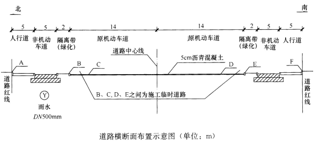 背景资料: 某公司承建城市道路改扩建工程,工程内包括:①在原有道路两侧各增设隔离带,非机动车道及人行道;②在北侧非机动车道下新增一条长800m直径为D...