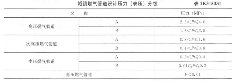 解析 我国城镇燃气管道根据输气压力一般分为七级,如下表所示: 燃气管道安装基本要求有: (1) 燃气管道穿越铁路或高速公路的燃气管道,其外应加套管,并提高绝缘防腐等级; (2)燃气管道通过河流时,可采用穿越河底或采用管桥跨越的形式。当条件许可时,也可利用道路桥梁跨越河流,并应符合下列要求: 1)利用道路桥梁跨越河流的燃气管道,其管道的输送压力不应大于 0.4MPa; 2)当燃气管道随桥梁敷设或采用管桥跨越河流时,必须采取安全防护措施; 3)燃气管道随桥梁敷设,宜采取如下安全防护措施: ①敷设于桥梁上的燃气管道应采用加厚的无缝钢管或焊接钢管,尽量减少焊缝,对焊缝进行 100%无损探伤; ②跨越通航河流的燃气管道管底标高,应符合通航净空的要求,管架外侧应设置护桩; ③在确定管道位置时,应与随桥敷设的其他可燃气体管道保持一定间距; ④管道应设置必要的补偿和减震措施; ⑤过河架空的燃气管道向下弯曲时,向下弯曲部分与水平管夹角宜采用 45形式; ⑥对管道应做较高等级的防腐保护。 水平定向钻法施工是城市管道工程施工的重要方法,它的应用并不影响燃气管道的埋设,故“A.燃气管道不得采用水平定向钻法施工”的说法是错误的。因此,本题的正确选项是 AE。