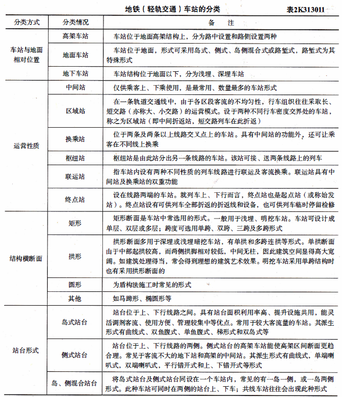 解析 教材P71页 地铁(轻轨交通)车站的分类,表2K313011中的内容,原文是城市轨道交通车站结构形式分为矩形、圆形及拱形和其他(马蹄形、椭圆形)等。