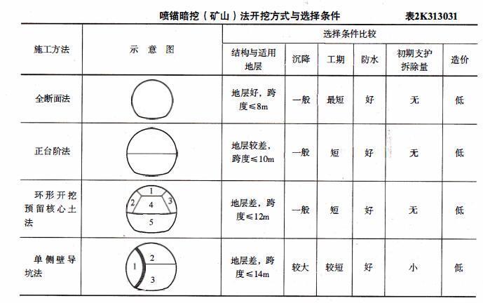 解析 教材P112页 表2K313031续表内容初期支护拆除量大的有:双侧壁导坑法、CRD法、中洞法、侧洞法、柱洞法。