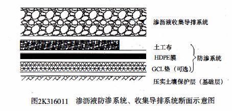 解析 教材P179页 垃圾填埋场填埋区结构。垃圾卫生填埋场填埋区工程的结构层次从上至下主要为渗沥液收集导排系统、防渗系统和基础层。图2K316011渗滤液防渗系统、收集导排系统断面示意图。