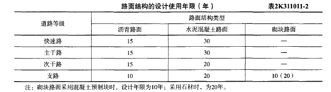 解析 新教材P2页 表2k311011-2水泥混凝土路面是30年,沥青混凝土路面是15年,沥青贯入式碎(砾)石是10年,沥青表面处治是8年。