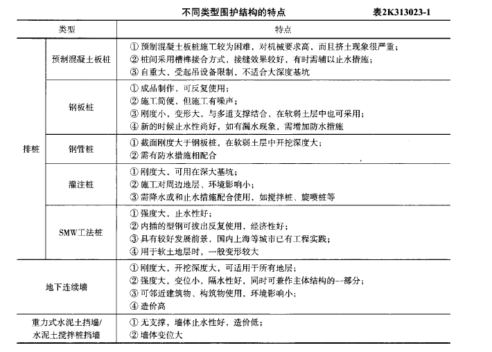 解析 新教材P94 2K313023-1可知:钢管桩:需有防水措施相配合;灌注桩:需降水或与能止水的搅拌桩、旋喷桩等配合使用;SMW工法桩:强度大,止水性好;型钢桩:止水性差,地下水位高的地方不适用。