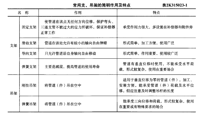 解析 新教材P151 供热管网附件及换热站设施安装要求。表2K315023-1 支架分为固定支架、滑动支架、导向支架、弹簧支架。