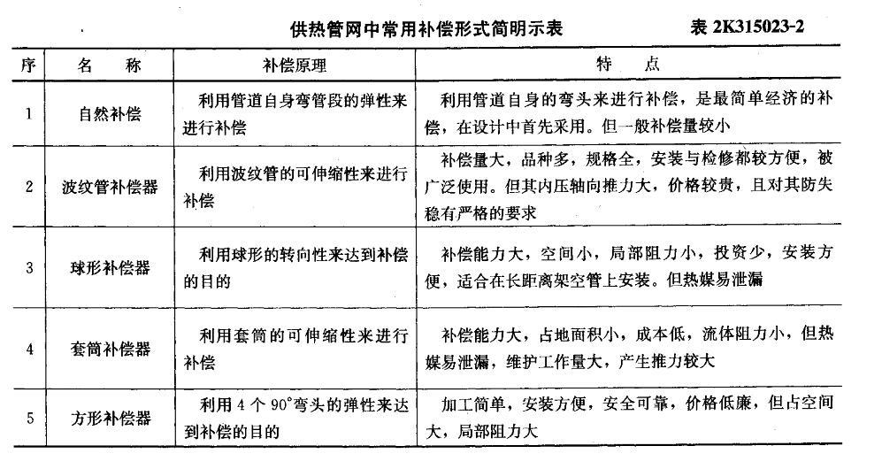 解析 B供热管网中常用的几种补偿器形式见表2X315023-2