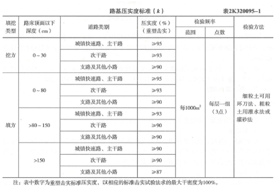 问题 在0~80cm深度范围内的主干路填土路基最低压实度(按重型击实标准)应为(??)。
