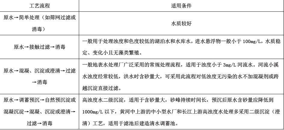 解析 常用水处理工艺流程及适用条件见下表