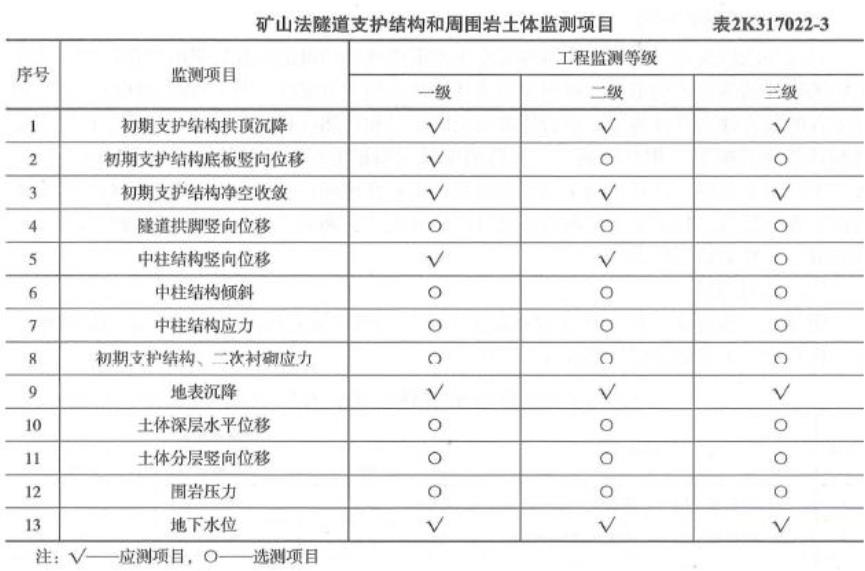 选项 A.初期支护结构拱顶沉降 B.二次衬砌应力 C.围岩压力 D.土体分层水平位移 E.地下水位