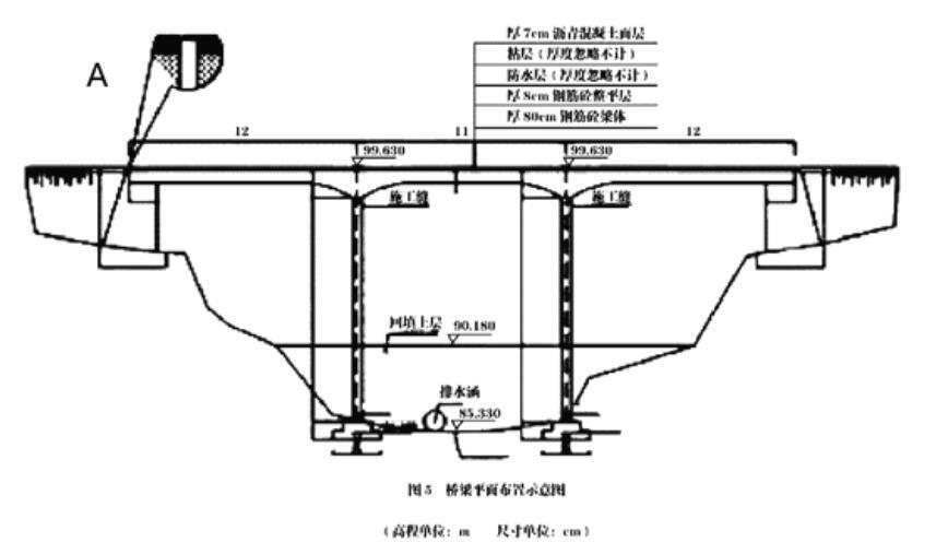 问题 某公司承建一座城市桥梁工程,该桥跨越山区季节性流水沟谷,上部结构为三跨式钢筋混凝土结构,重力是 U 型桥台,基础均采用扩大基础,桥面铺装自下而上为厚 8cm 的钢筋 凝土整平层+防水层+粘层+厚 7cm 沥青混凝土面层;桥面设计高程为 99.630m,桥梁立面布置,如图 5 所示 项目部编制的施工方案有如下内容: (1)根据该桥结构特点,施工时,在墩柱与上部结构衔接处(即梁底曲面变弯处)设置施工缝。 (2)上部结构采用碗扣式钢管满堂支架施工方案。根据现场地形特点及施工便道布置情况,采用杂土对沟谷一次性进行回填,回填后经整平碾压,场地高程为 90.180m,并在其 进行支架搭设施工,支架立柱放置于 20cm×20cm 的楞木上,支架搭设完成后采用土袋进行堆载预压。 支架搭设完成后,项目部立即按施工方案要求的预压荷载对支架采用土袋进行堆载预压,期间遇较长时间大雨,场地积水。项目部对支架预压情况进行连续监测,数据显示各点 的沉降量均超过规范规定,导致预压失败。此后,项目采取了相应整改措施,并严格按规范 规定,重新开展支架施工与预压工作。 【问题】 1.写出图5 中构件 A 的名称。 2.根据图 5 判断,按桥梁结构特点,该桥梁属于哪种类型?简述该类型桥梁的主要受力特点 3.施工方案(1)中,在浇筑桥梁上部结构时,施工缝如何处理? 4.根据施工方案(2),列式计算,桥梁上部结构施工图,应搭设满堂支架的最大高度;根据计算结果,该支架施工方案是否需要组织专家论证,说明理由。 5.试分析,项目部支架预压失败的可能原因 6. 项目部应采取哪些措施才能顺利的使支架预压成功?