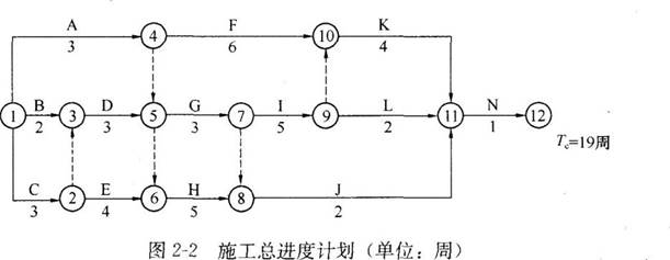 问题 背景资料: 某城市道路工程,施工合同中约定,工期19周;钢筋混凝土基础工程量增加超出15%时,结算时对超出部分按原价的90%调整单价。经总监理工程师批准的施工总进度计划如图2-2所示,其中A、C工作为钢筋混凝土基础工程,B、G工作为片石混凝土基础工程,D、E、F、H、I工作为设备安装工程,K、L、J、N工作为设备调试工作。 施工过程中,发生如下事件: 事件一:合同约定A、C工作的综合单价为700元/m3。在A、C工作开始前,设计单位修改了设备基础尺寸,A工作的工程量由原来的4200m3增加到7000m3,C工作工程量由原来的3600m3减到2400m3。 事件二:A、D工作完成后,建设单位拟将后续工程的总工期缩短2周,要求项目监理机构帮助拟定一个合理的赶工方案,以便与施工单位洽商,项目监理机构提出的后续工作可以缩短的时问及其赶工费率见表2-2。 事件三:调试工作结果见表2-3。 问题: 1.事件一中,设计修改后,在单位时间完成工程量不变的前提下,A、C工作的持续时间分别为多少周?对合同总工期是否有影响?为什么?A、C工作的费用共增加了多少? 2.事件二中,项目监理机构如何调整计划才能既实现建设单位的要求又能使赶工费用最少?说明理由。增加的赶工费用最少是多少? 3.对表2-4中未通过的调试工作,根据施工合同进行责任界定,并确定应补偿施工单位的费用。
