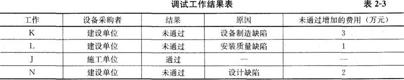 解析 1.事件一中,设计修改后,在单位时间完成工程量不变的前提下,A工作的持续时间为3/4200×7000=5周;C工作的持续时间为3/3600×2400=2周。对合同总工期有影响。因为该施工总进度计划的关键线路是①→②→③→⑤→⑦→⑨→⑩→?→?,C工作为关键工作,其持续时间由3周变为2周,对合同总工期有影响。 A.C工作共增加的工程量为:(7000+2400)-(4200+3600)=1600m3,由于1600/7800=21%>15%,所以要进行调价。 不进行调价的工程量为:(4200+3600)×(1+15%)=8970m3,进行调价的工程量为:7000+2400-8970=430m3。 A.C工作实际发生的费用为:8970×700+430×700×90%=654.99万元。 A.C工作原计划的费用为:(4200+3600)×700=546万元。 A.C工作共增加的费用为:654.99-546=108.99万元。 2.(1)事件二中,项目监理机构在原施工总进度计划的基础上,各缩短工作G和工作K的工作时间1周,这样才能既实现建设单位的要求又能使赶工费用最少。 理由:由于A、D工作完成后,施工总进度计划的关键线路只有工作G、I、K和N,工作N不存在可缩短的时间,故应不考虑压缩;工作G、I、K的赶工费率从小到大依次是G(0.4万元)、K(1.0万元)、I(3.0万元),那么首先压缩工作G的时间1周(可缩短的时间只有1周),压缩工作G产生的赶工费为0.4万元;再压缩工作K的时间1周,压缩工作K产生的赶工费为1.0万元。 (2)增加的最少赶工费用是0.4+1.0=1.4万元。 3.对表2-4中未通过的调试工作,逐项根据施工合同进行责任界定: (1)工作K调试未通过的责任由建设单位承担。 (2)工作L调试未通过的责任由施工单位承担。 (3)工作N调试未通过的责任由建设单位承担。 应补偿施工单位的费用为:3+2=5万元。
