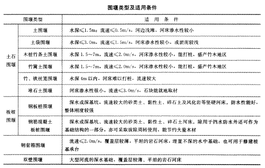 解析 各类围堰适用条件见下表。