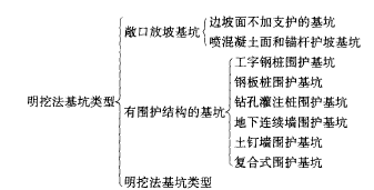 解析 敞口放坡基坑分为边坡面不加支护的基坑以及喷混凝土面和锚杆护坡基坑两类;有围护结构基坑的围护结构又分为不同类型。