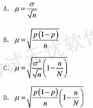 问题 已知某省某市上半年招收各类职业人员资料如下表所示。 男性 女性 报考人数 录用率(%) 报考人数 录用率(%) 技工 300 35 150 40 教师 200 25 150 30 医生 100 8 200 10 合计 600 —— 500 —— 根据上述资料,从下列各题备选答案中选出正确答案。 如果用该市的样本数据推算全省男性在这三个职业中的录用比率,采用重置抽样的方法计算抽样标准误差的公式为()。
