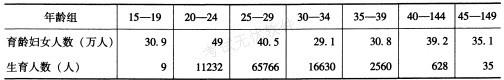 问题 某地区育龄妇女各年龄组人数及生育人数资料如下表: 该地区育龄妇女生育率为()