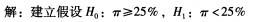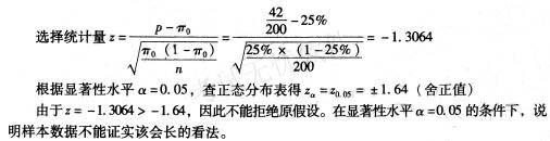 问题 有一个组织在其成员中提倡通过自修提高水平,目前正考虑帮助其成员中未曾高中毕业者通过自修达到高中毕业的水平。该组织的会长认为成员中未读完高中的人少于25%,并且想通过适当的假设检验来支持这一看法。他从该组织成员中抽选200人组成一个随机样本,发现其中有42人没有高中毕业。试问,这些数据是否支持这个会长的看法?(α=0.05)