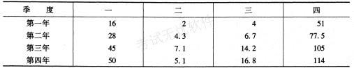 某市某产品连续四年各季度的出口额资料如下(单位:万元): 要求计算该市该产品出口额的季节比率,并对其季节变动情况做简要分析。