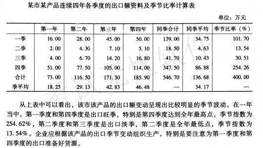 相关内容:产品,季度,出口额,资料,如下,单位,万元,要求,季节,比率,变动,情况,简要,分析