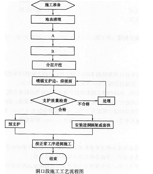 问题 背景资料 某施工单位承建某新建铁路隧道,隧道长2600m,进口段为风化岩,节理发育、破碎,围岩为Ⅳ级,出口段为堆积层,厚度较厚,围岩为Ⅵ级,正洞围岩均为Ⅲ级。施工过程中发生了以下事件: 事件一,为赶在雨季前实现进洞目标,项目部确定了出口段施工顺序,工艺流程图详见下图。 事件二,项目部制定的量测大纲,其中必测项目只有洞内外观察、拱顶下沉和二次衬砌后净空变化三项。总工程师审核后,发现存在问题,退回要求修改补充。 事件三,隧道掘进进度计划为平均单口开挖循环进尺为2.8m,综合循环时间为12.4h。假定按三班制组织施工,每月作业时间为30d,考虑工程环境和时间利用率后的修正系数为0.85。隧道除进、出口外不具备进洞作业条件,进口洞口施工需1个月,出口洞口施工需3个月,进、出口同时开工,平行作业(不考虑两个工作面相向施工临近贯通相距8循环进尺一方要撤出对工期的影响)。 问题 1.针对事件一,指出图中A、B所代表的施工工艺名称。 2.针对事件二,指出还缺少几项必测项目,并补充项目内容。 3.根据事件三,通过理论计算给出隧道单口月开挖进度(取整数)。 4.针对事件三,通过计算给出进、出口掘进的长度(取整数)和该隧道从开工至贯通所需要的时间(取1位小数)。