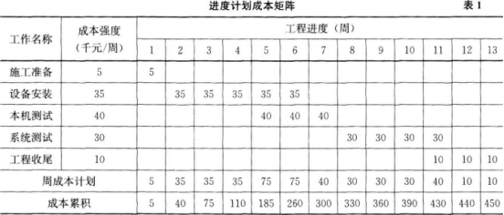解析 1.根据进度计划横道图,绘制进度计划成本矩阵,如表1所示。 成本周计划直方图,如图2所示。 2.绘制计划时间一成本累计曲线,如图3所示。 3.A单位拒绝管道光缆施工是合理的。 理由:A单位中标的是通信设备安装工程,而管道光缆施工属于通信线路施工工程,超出了原有合同范围。 4.双方签订的合同价款不合规定,这是因为根据相关文件规定,安全生产费用应按建筑安装工程费的1.5%计取,属于不可竞争费用。 合同价款=(100-30)×80%(施工费)+100×1-5%(安全生产费)=57.5万元。 5.计算最终结算价款时,先计算增加的中继站设备安装工程费用: 新增工程价款=(5-3.5)×80%(施工费)+5×1.5%(安全生产费)+3.5(A采料)=1.2+0.075+3.5=4.775万元。 最终结算价款=57.5(原合同价款)+4.775(新增价款)=62.275万元。 工程保修金应为最终结算价款的5%,即:62.275×5%=3.11375万元。 6.因为工程价款在500万以下,按照有关规定应从接到工程竣工结算报告或资料之日起20d内完成审计,即2016年10月29日前完成结算文件审定。 按照有关规定,工程初验后3个月之内,双方按照合同价款、合同价款调整内容以及索赔事项,进行工程价款结算,即2017年1月24日前完成工程款的支付。